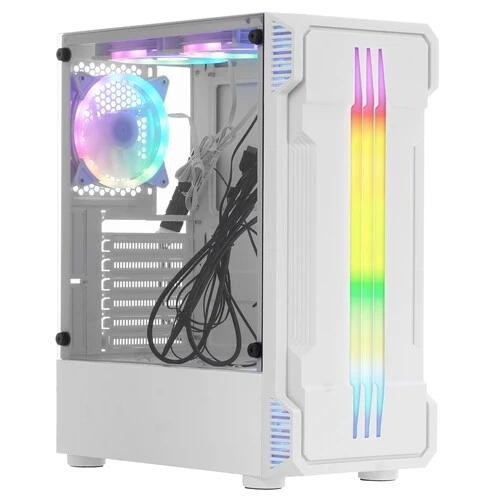 Корпус ARDOR GAMING Rare Minicase MS3 Mesh WG ARGB обращает на себя не только белым цветом, но и наличием эффектной ARGB-подсветки. Модель, соответствующая типоразмеру Mini-Tower, обладает компактными размерами. Длина, ширина и высота корпуса равны 372x208x426 мм соответственно. nКорпус ARDOR GAMING Rare Minicase MS3 Mesh WG ARGB может использоваться для сборки игрового или мультимедийного системного блока. Ничто не помешает вам создать и универсальную рабочую станцию, применение которой можно найти как дома, так и в офисе. Корпус имеет 4 слота расширения. 5.25-дюймовый отсек отсутствует: если вам потребуется оптический привод, придется воспользоваться внешним устройством. Модель совместима с видеокартами, длина которых может достигать 350 мм. Высота кулера процессора не может превышать 160 мм. Совместимые системные платы – Micro-ATX. На панель управления, расположенную возле стыка передней и верхней панелей, выведены 3 порта USB, один из которых соответствует стандарту USB 3.0.